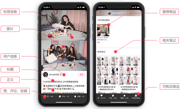 笔记中软植入商品购买链接以及穿插用户推荐和福利社商品推荐,提高商品曝光率,增加订单量,提升购买率